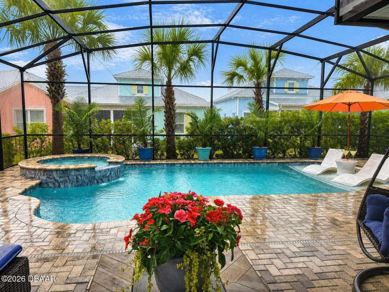 Luxury Breeze Bay in Latitude Margaritaville"beautifully upgraded and truly move-in ready. Designed for relaxed elegance, this home offers a saltwater pool with integrated spa and dual heat (solar + electric), plus an extended paver lanai for effortless indoor-outdoor living. Enjoy a gentle glimpse of the pond in the distance when you step outside to unwind. Inside, you'll love the fresh coastal feel with new paint and LVP throughout, plantation shutters, crown molding, tray ceilings with recessed lighting, and majestic 8' doors. The kitchen shines with 42'' white cabinetry, and gas cooking ~ perfect for entertaining. Laundry includes a utility sink; closets feature wood shelving; and the primary suite offers a linen closet in the water closet. Sealed driveway and lanai pavers add the finishing touch.Golf Cart & select furniture negotiable.*Seller offering $2500 toward buyers closing costs with acceptable offer*''Come see what makes Latitude Margaritaville so special!''